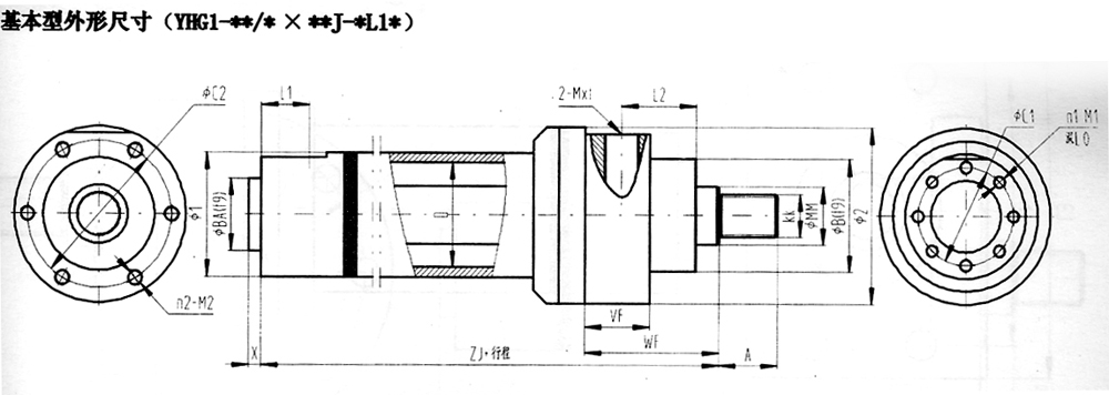 缸徑 | B | BA | C1 | C2 | φ1 | φ2 | VF | WF | ZJ | X | L1 | L2 | LO | n1-M1 | n2-M2 | 40 | 48 | 20 | 42 | 66 | 54 | 80 | 19 | 32 | 190 | 8 | 26 | 44 | 12 | 8-M6 | 6-M8 | 50 | 55 | 30 | 50 | 75 | 63.5 | 90 | 24 | 38 | 205 | 8 | 18 | 61 | 12 | 8-M6 | 6-M8 | 63 | 70 | 38 | 60 | 90 | 76 | 108 | 29 | 45 | 224 | 10 | 25 | 52 | 12 | 8-M8 | 6-M10 | 80 | 86 | 55 | 75 | 112 | 95 | 134 | 36 | 54 | 250 | 10 | 36 | 58 | 13 | 8-M10 | 6-M12 | 90 | 100 | 55 | 80 | 132 | 108 | 158 | 36 | 55 | 270 | 10 | 43 | 63 | 17 | 8-M12 | 6-M16 | 100 | 118 | 68 | 95 | 150 | 121 | 175 | 37 | 57 | 300 | 10 | 47 | 69 | 18 | 8-M12 | 8-M16 | 110 | 132 | 60 | 95 | 165 | 133 | 195 | 37 | 57 | 310 | 10 | 50 | 73 | 22 | 8-M16 | 8-M16 | 125 | 150 | 80 | 115 | 184 | 152 | 212 | 37 | 60 | 325 | 10 | 50 | 85 | 22 | 8-M16 | 8-M16 | 140 | 165 | 95 | 132 | 200 | 168 | 230 | 37 | 62 | 335 | 10 | 53 | 74 | 22 | 8-M16 | 8-M16 | 150 | 175 | 105 | 140 | 215 | 180 | 245 | 41 | 64 | 350 | 10 | 54 | 85 | 22 | 8-M16 | 8-M16 | 160 | 190 | 110 | 150 | 230 | 194 | 265 | 41 | 66 | 370 | 10 | 59 | 91 | 26 | 8-M20 | 8-M20 | 180 | 200 | 110 | 160 | 250 | 219 | 280 | 41 | 70 | 410 | 15 | 65 | 98 | 27 | 8-M20 | 8-M20 | 200 | 215 | 120 | 170 | 280 | 145 | 320 | 45 | 75 | 450 | 15 | 65 | 115 | 27 | 8-M20 | 8-M20 | 220 | 240 | 140 | 200 | 310 | 273 | 340 | 45 | 80 | 490 | 20 | 75 | 123 | 36 | 8-M24 | 8-M20 | 250 | 280 | 160 | 220 | 340 | 299 | 380 | 64 | 96 | 550 | 25 | 80 | 145 | 36 | 8-M24 | 12-M24 | 280 | 300 | 180 | 240 | 370 | 325 | 410 | 64 | 100 | 600 | 30 | 80 | 162 | 36 | 8-M24 | 12-M24 | 320 | 360 | 200 | 310 | 430 | 377 | 470 | 71 | 108 | 660 | 35 | 80 | 190 | 36 | 12-M24 | 16-M24 |