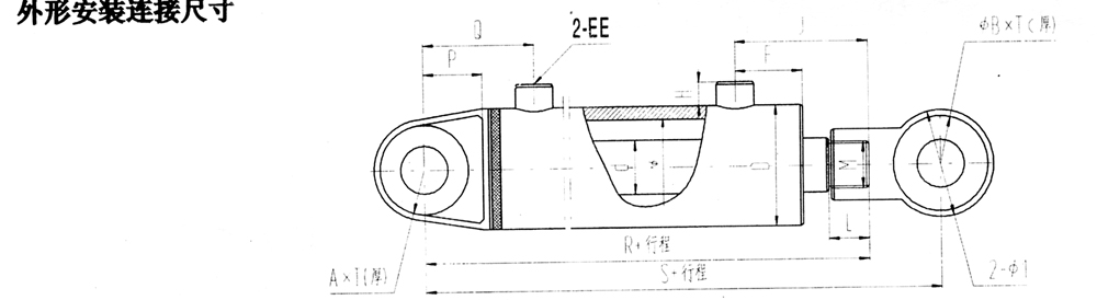 型號 | d | φ | D | EE | M | L | B×T | A×T | P | Q | F | H | R | S | 2-φ1或關(guān)節(jié)軸承 | DG-J40C-E1※Y3 | 22 | 40 | 60 | M18×1.5 | M20×1.5 | 29 | 45×37.5 | 20×22 | 27 | 59 | 43 | 15 | 200 | 226 | 16D5 | DG-J50C-E1※Y3 | 28 | 50 | 70 | M24×1.5 | 34 | 56×45 | 25×28 | 32 | 66 | 52 | 15 | 242 | 276 | 20D5 | DG-J63C-E1※Y3 | 35 | 63 | 83 | M22×1.5 | M30×1.5 | 36 | 71×60 | 35.5×40 | 40 | 79 | 59 | 20 | 274 | 317 | 31.5D5或GE30ES | DG-J80C-E1※Y3 | 45 | 80 | 102 | M39×1.5 | 42 | 90×75 | 42.5×50 | 50 | 94 | 57 | 20 | 306 | 359 | 40D5或GE40ES | DG-J90C-E1※Y3 | 50 | 90 | 114 | M39×1.5 | 42 | 90×75 | 45×45 | 50 | 101 | 70 | 20 | 345 | 396 | 40D5或GE40ES | DG-J100C-E1※Y3 | 56 | 100 | 127 | M27×2 | M48×1.5 | 62 | 112×95 | 53×63 | 60 | 111 | 66 | 24 | 269 | 427 | 50D5或GE50ES | DG-J110C-E1※Y3 | 63 | 110 | 140 | M48×1.5 | 62 | 112×95 | 55×75 | 65 | 129 | 83 | 24 | 407 | 462 | 50D5或GE50ES | DG-J125C-E1※Y3 | 70 | 125 | 152 | M64×2 | 70 | 140×118 | 67×80 | 75 | 136 | 70 | 24 | 421 | 496 | 63D5或GE63ES | DG-J140C-E1※Y3 | 80 | 140 | 168 | M33×2 | M64×2 | 70 | 140×118 | 65×80 | 75 | 147 | 93 | 25 | 449 | 522 | 63D5或GE63ES | DG-J150C-E1※Y3 | 85 | 150 | 194 | M80×2 | 80 | 170×135 | 75×80 | 95 | 169 | 78 | 25 | 481 | 566 | 71D5或GE70ES | DG-J160C-E1※Y3 | 90 | 160 | 194 | M80×2 | 80 | 170×135 | 75×80 | 95 | 169 | 113 | 25 | 520 | 603 | 71D5或GE70ES | DG-J180C-E1※Y3 | 100 | 180 | 219 | M42×2 | M90×2 | 95 | 176×160 | 80×90 | 95 | 173 | 149 | 30 | 597 | 687 | 90D5或GE90ES | DG-J200C-E1※Y3 | 110 | 200 | 245 | M90×2 | 95 | 210×160 | 100×105 | 95 | 200 | 165 | 30 | 687 | 777 | 100D5或GE100ES | DG-J220C-E1※Y3 | 125 | 220 | 273 | M110×3 | 112 | 200×120 | 110×120 | 120 | 200 | 157 | 30 | 693 | 810 | 110H10或GE110ES | DG-J250C-E1※Y3 | 140 | 250 | 299 | M125×4 | 125 | 220×120 | 120×136 | 130 | 210 | 157 | 30 | 716 | 831 | 120H10或GE120ES | DG-J320C-E1※Y3 | 180 | 320 | 402 | M48*2 | M160×4 | 166 | 280×176 | 140×176 | 160 | 264 | 200 | 35 | 847 | 1017 | 140H10或GE140ES |